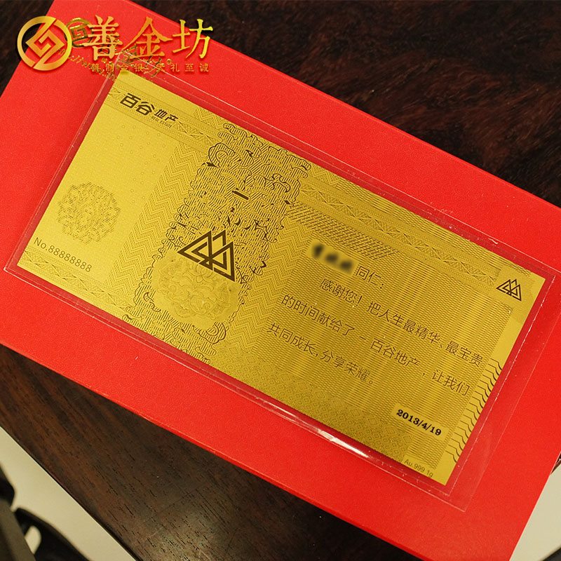 北京百谷地产1克金钞_金钞定制 银钞制作 加工纪念钞 员工福利